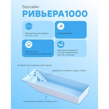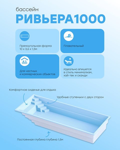 РИВЬЕРА 1000 — классический плавательный бассейн со строгим сдержанным стилем и максимальной полезной площадью.