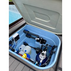 Вход тщательно продуман: у торца расположены три ступени — широкая площадка и две небольшие. Они позволяют безопасно и легко заходить в воду, при этом все остальное пространство остается свободным для плавания.