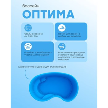 ОПТИМА — компактный семейный бассейн с необычным дизайном, который идеально подойдет для небольшого участка или помещения.