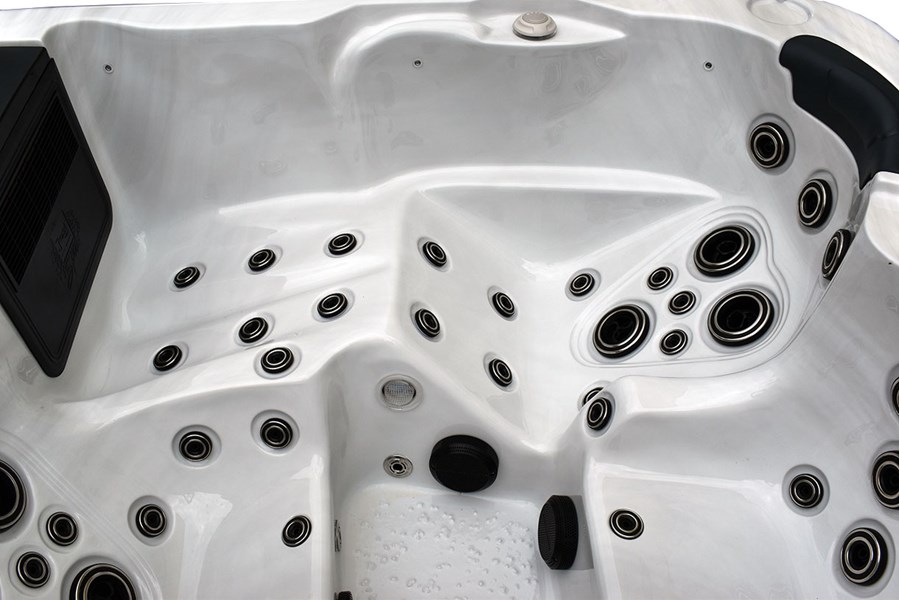 Акрил 02 (White Pearlcent),цвет панелей Сhocolate, Balboa 3 кВт, термокрышка, доп утепление, накладки на форс.из нерж.стали, WI-FI, подсветка RGB