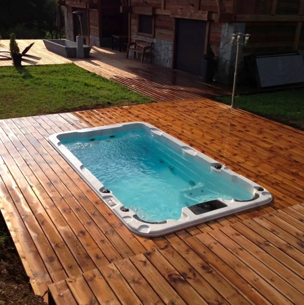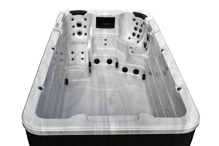Цвет Акрила 09(Ocean Wave), цвет панелей Grey, Нагреватель Balboa 3 кВт, термокрышка, термоизоляция, накладки на форсунки из нерж.стали, подсветка RGB линии