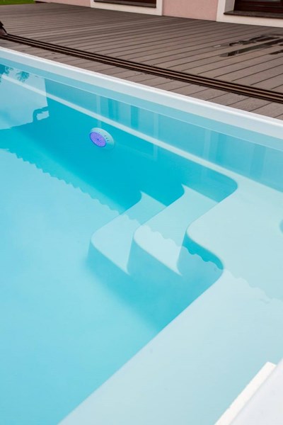 Бассейн ЭРИ — настоящий бестселлер в категории семейных моделей. Чаша бассейна ЭРИ имеет классическую прямоугольную форму и постоянную глубину. Для входа в воду по углам предусмотрены неширокие ступеньки. Они минимально сокращают полезное пространство бассейна и могут использоваться в качестве мест для отдыха. Между собой лестницы соединены широким сиденьем — это потенциальная площадка для гидромассажа.