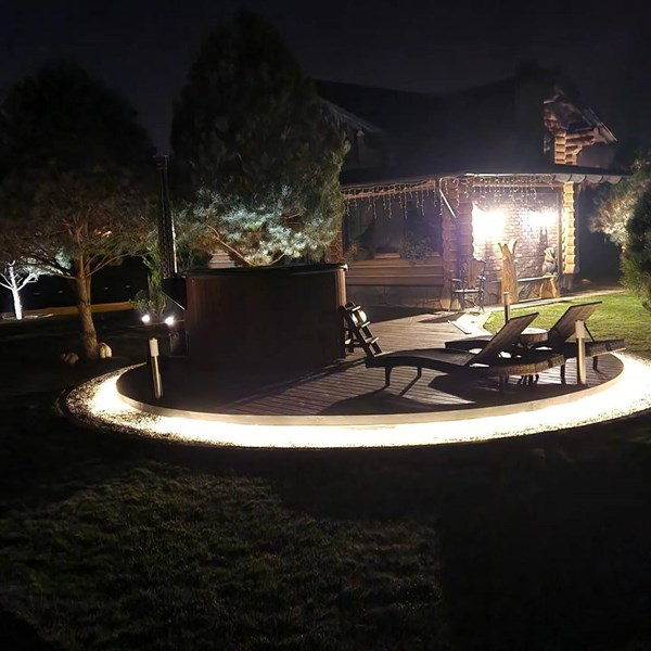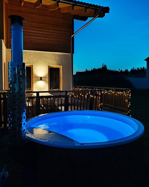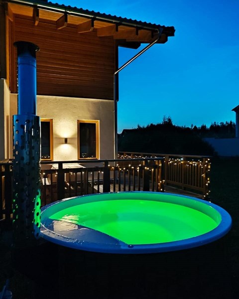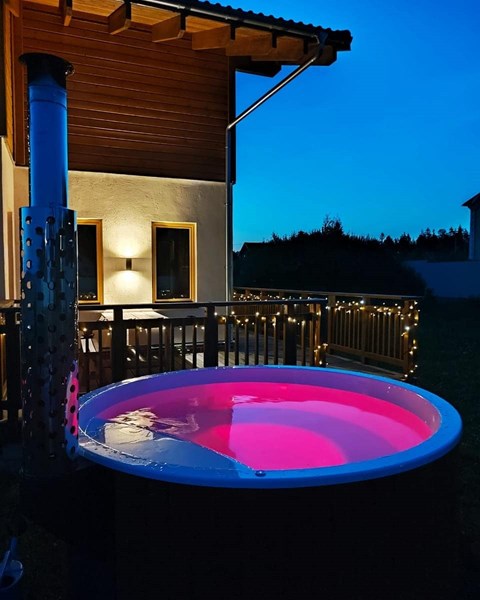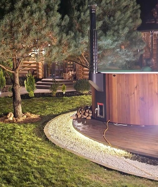 Купель можно использовать на улице при любой погоде. Интегрированная в чашу купели печь из нержавеющей стали быстро нагреет воду до комфортной температуры. А через установленное в дверце печи жаропрочное стекло вы можете наблюдать, как красиво разгорается огонь. Дымоход защищен специальным экраном из нержавеющей стали, поэтому обжечься просто нереально. Печь эстетично встроена в купель, а все коммуникации аккуратно спрятаны внутри конструкции. Одно нажатие на пульт – и ваше тело нежно обволакивает облако из тысячи воздушных пузырьков. Функцию аэромассажа можно совместить с хромотерапией – «цветным купанием», которое помогает справиться с хронической усталостью, восстановить режим сна, нормализовать артериальное давление.