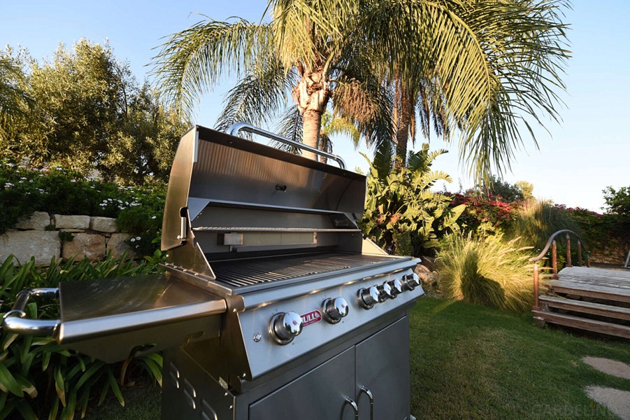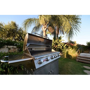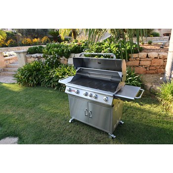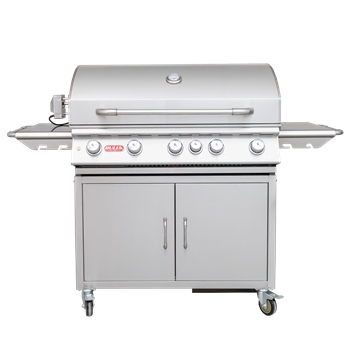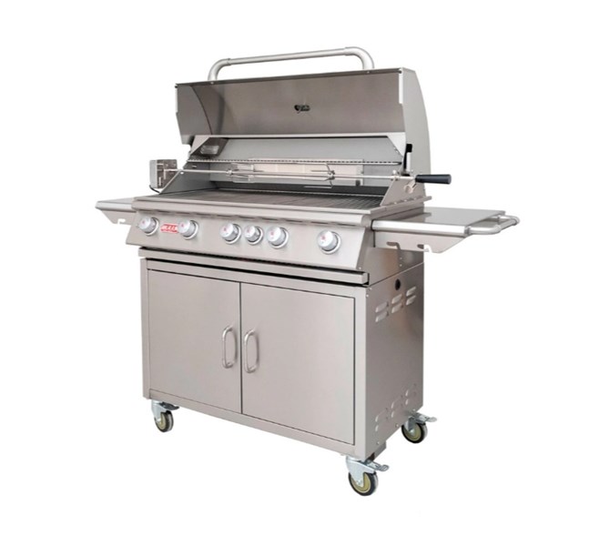 Оснащена задней керамической горелкой и 5 основными горелками, отлитыми из нержавеющей стали. Вертел входит в комплектацию.