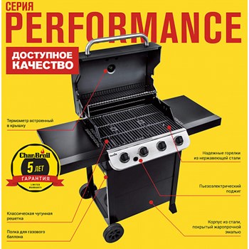 Performance Series™ линейка традиционных грилей с классической чугунной решеткой. В них есть все, что необходимо для настоящего барбекю.