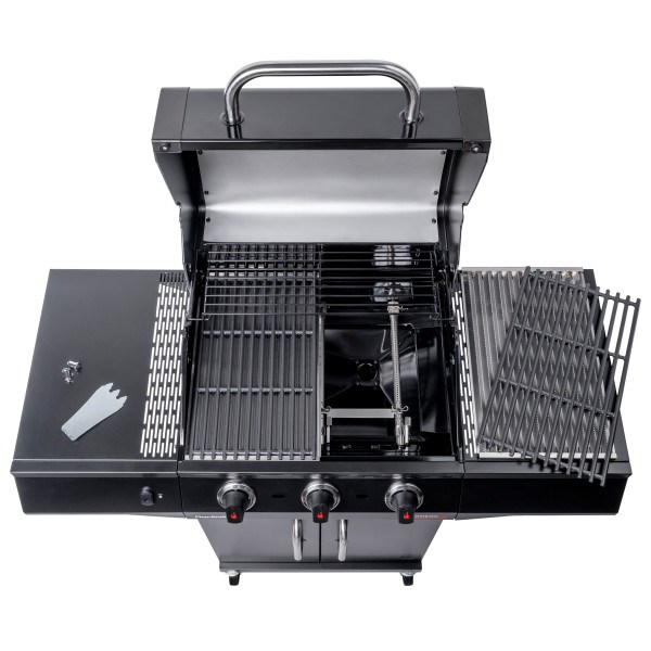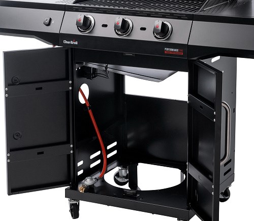 Стильная модель серии Performance CORE в черном цвете оснащена запатентованной инфракрасной пластиной TRU Infrared™, обеспечивающей равномерный жар предохраняющей от вспышек капающего жира. Горелки обеспечивают мощный жар для инфракрасной пластины TRU Infrared™, которая накрыта сверху чугунной решеткой с фарфоровой эмалью. Три основные горелки (нерж. сталь) имеют гарантию 5 лет. Место для установки и хранения газового баллона. Пьезоподжиг на каждой горелке зажигает их по отдельности и независимо одним нажатием кнопки, без открытого пламени. Из 4х колес 2 имеют фиксаторы. Удобные крючки для хранения приборов.