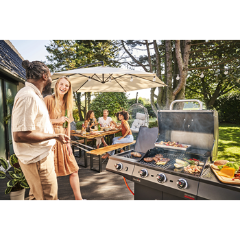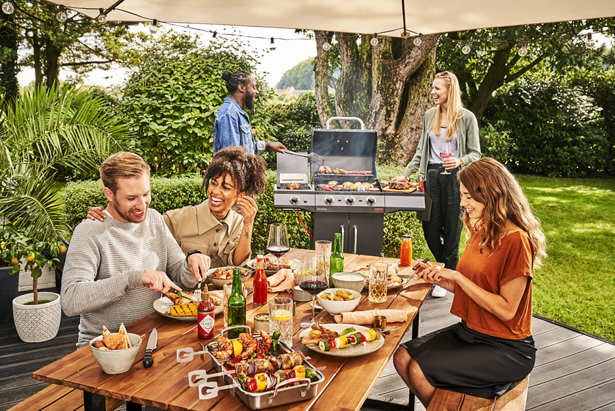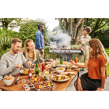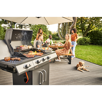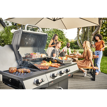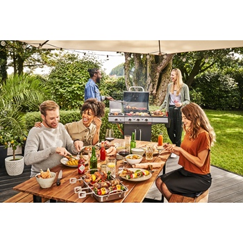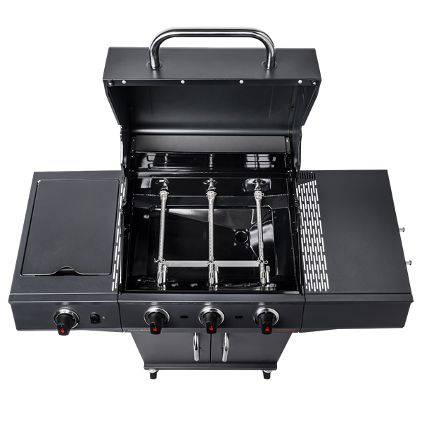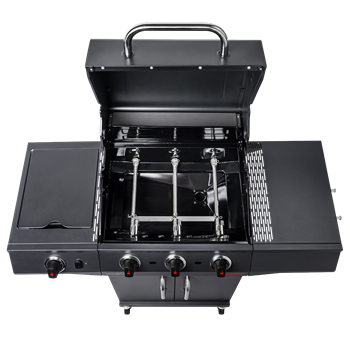 Три основные горелки из нержавеющей стали обеспечивают мощный жар для инфракрасной пластины TRU Infrared™, над которой установлена классическая чугунная решетка, покрытая фарфоровой эмалью.