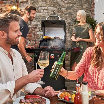 Надежный стальной корпус в стильном черном дизайне имеет достаточно места для хранения газового баллона и различных аксессуаров. Колеса с фиксаторами. При необходимости к модели серии Professional™ можно подключить электрический вертел, который поставляется отдельно.