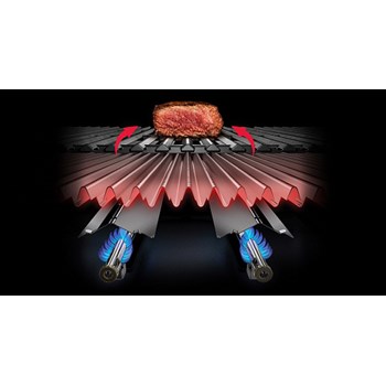 Гарантия 10 лет на две высокопроизводительные основные горелки из нержавеющей стали, которые обеспечивают мощный жар для инфракрасной пластины TRU Infrared™, сверху она накрыта основной чугунной решеткой. Дополнительная решетка для разогрева покрыта фарфоровой эмалью.