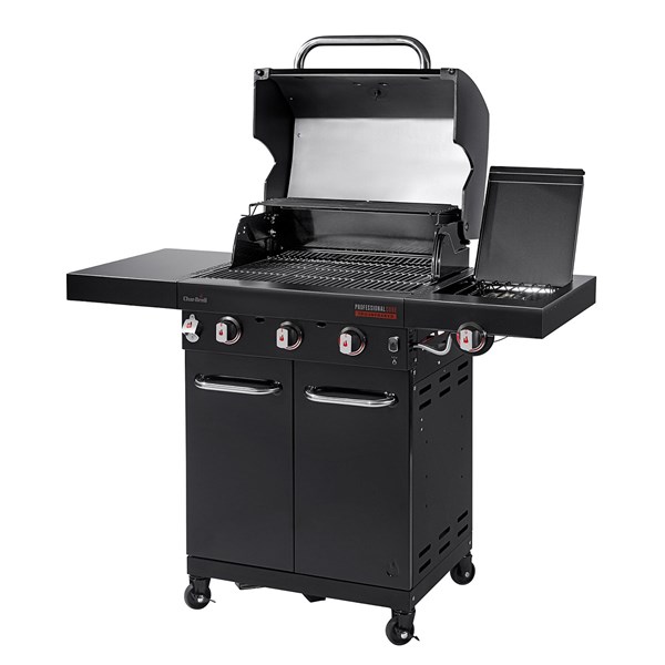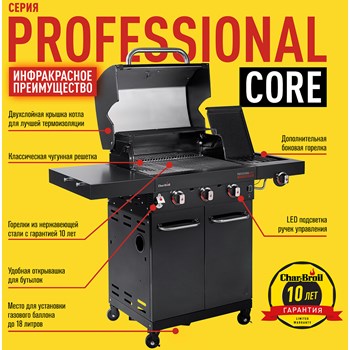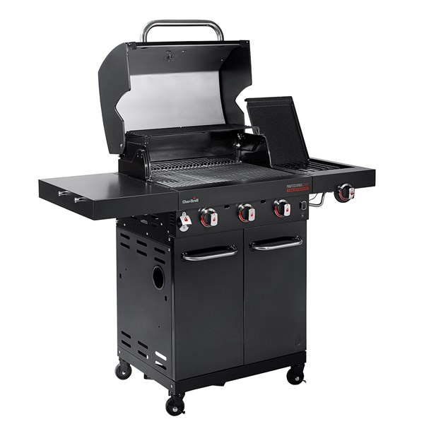 Являющиеся топ моделями в США, Европе и по всему миру новейшие газовые грили Char-Broil серии Professional™ третьего поколения оснащены запатентованной инфракрасной пластиной TRU Infrared™ для обеспечения равномерного жара по всей решетке и предохранения от вспышек капающего жира в котле. Модель среднего размера имеет три основных и дополнительную боковую горелку, прекрасно подойдет для любой компании. Гриль запускается одним нажатием кнопки пьезоэлектрического поджига SureFire®. Ручки управления подсвечиваются красной LED подсветкой.