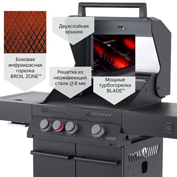Три мощные запатентованные турбогорелки BLADE™ разгоняют гриль до 300 градусов за 10