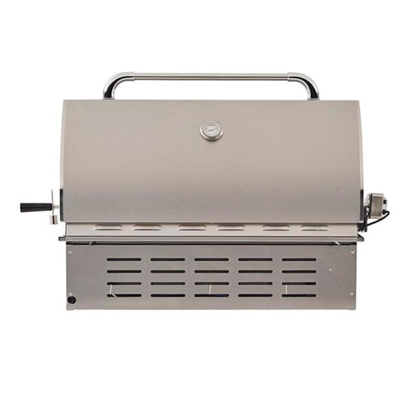 Оснащена задней керамической горелкой и 5 основными горелками, отлитыми из нержавеющей стали. Вертел входит в комплектацию.