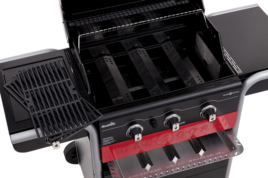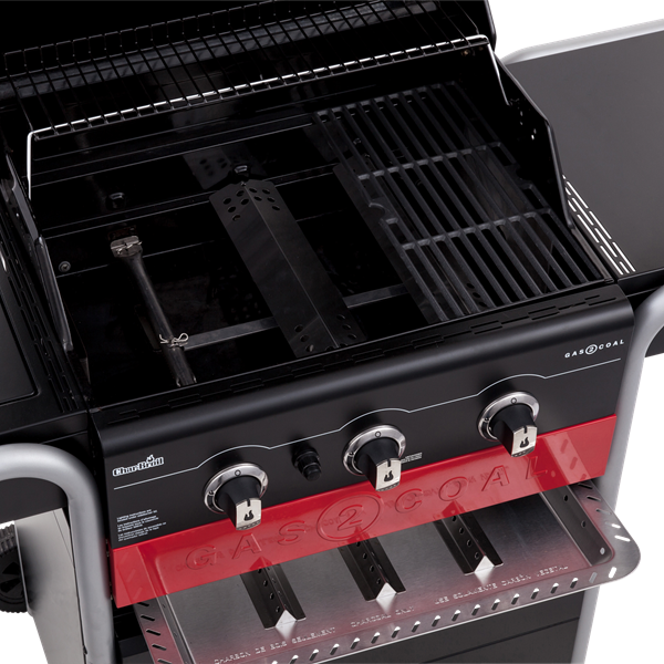 Фундаментальный вопрос “какой гриль выбрать, газовый или угольный?” еще никогда не решался так легко и элегантно. Второе поколение знаменитых гибридных прилей Gas2Coal совмещает в себе полноценный газовый Char-Broil с возможность легко переключится на уголь. Гриль запускается кнопкой пьезоэлектрического поджига. Можно вставить специальный лоток с разделителями и быстро разжечь уголь на газовых горелках или пользоваться им как классическим газовым грилем.