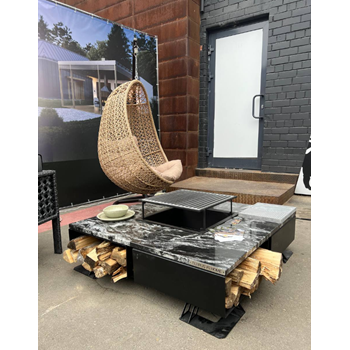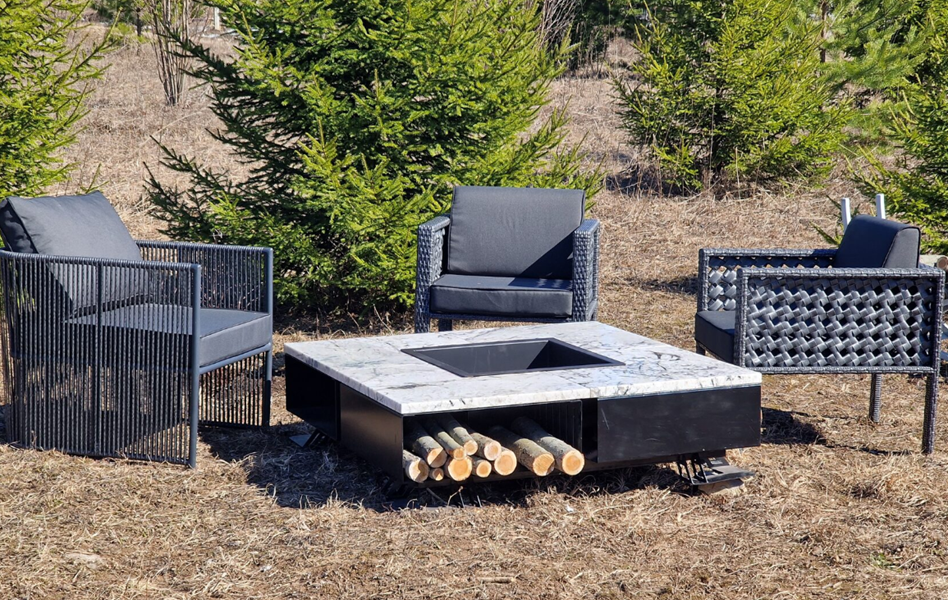 Очаг, вдохновленный модернистской архитектурой. Его форма идеально впишется в пространство современного сада. Он может служить в качестве стола, очага или футуристической скульптуры.