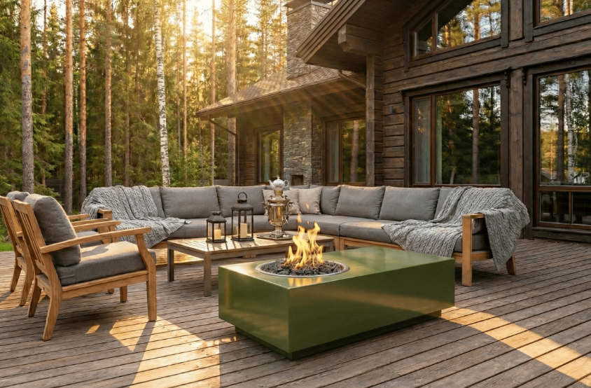 Уличные газовые камины дают живой огонь и тепло без дыма, копоти и запаха, не требуют дров и сложного ухода. Они включаются за секунду, безопасны благодаря автоматике, работают круглый год и превращают любую террасу в эффектную атмосферную зону отдыха.