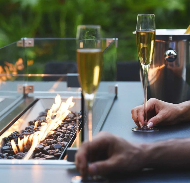 Газовый стол-камин состоит из горелки, композитного баллона (приобретается отдельно), блока управления, самого корпуса стола и аксессуаров (приобретаются отдельно). Блок управления позволяет разжигать камин с кнопки и регулировать интенсивность огня. Все горелки сертифицированы и абсолютно безопасны, благодаря автоматике и системам защиты. Каждая горелка перед отправкой проходит дополнительную проверку и испытание.