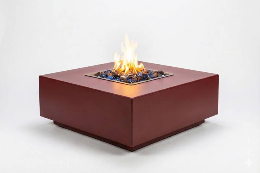 Квадратный газовый камин с чёткой геометрией и стальным корпусом