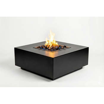 Квадратный газовый камин с чёткой геометрией и стальным корпусом
