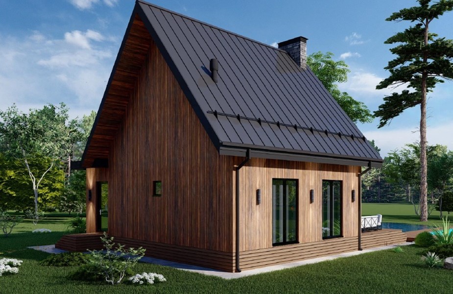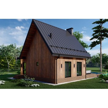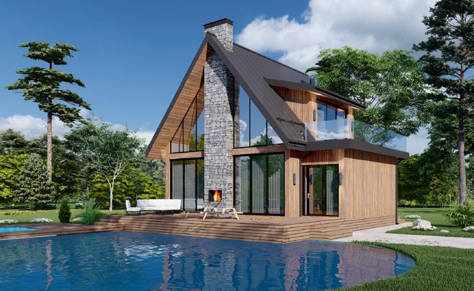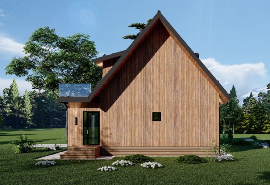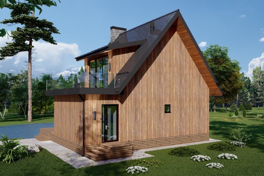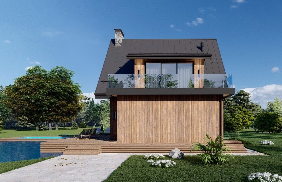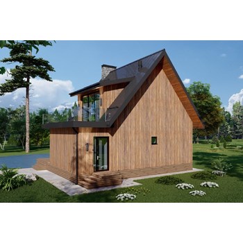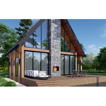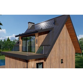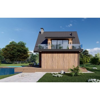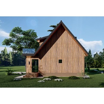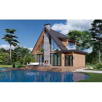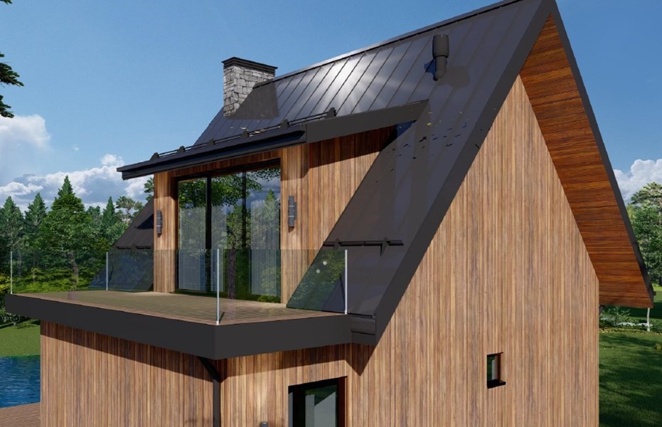 Каркасный дом в 2-х уровнях со вторым светом. Возможна модификация с 2-мя полноценными этажами. 1-й этаж: просторный холл с открытой кухонной зоной, с/у, тамбур с гардеробной, кладовая с отдельным входом. 2-й этаж: большая спальня с гардеробной зоной, выход на просторную террасу. Терраса на 2-м этаже со стеклянным ограждением, фальцевая кровля графитового цвета, панорамное остекление фасада из алюминиевых стеклопакетов с ламинацией (тёплая серия, с защитой стеклопакета Solar Guard), фасад отделан планкеном лиственницы разноширокой. Проведены магистрали коммуникаций от точек подключения до вывода за периметр здания (вода, канализация), электричество: проводка проводом NYM из расчёта 1 точка освещения + 2 розетки на комнату. Полы уложены ламинатом Quick Step, стены на выбор: 2 слоя ГКЛ либо вагонка, потолок с черновой подшивкой доской 25*100 мм, межкомнатные двери.