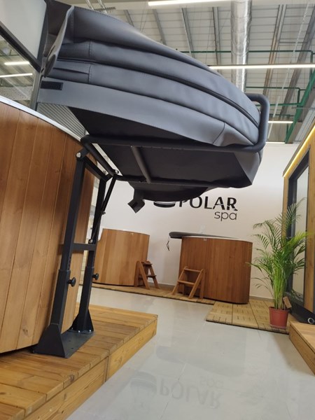 Подъемный механизм для термокрышки купели. Позволяет удобно, быстро и без особых усилий убрать и вернуть на место термокрышку к любой купели от Polarspa.