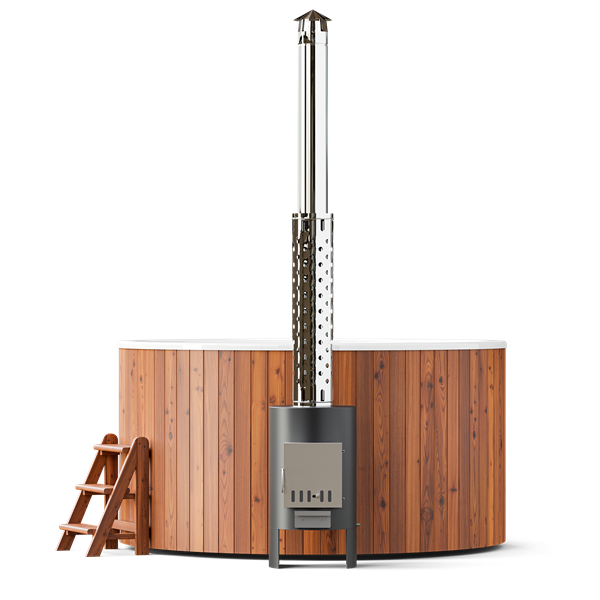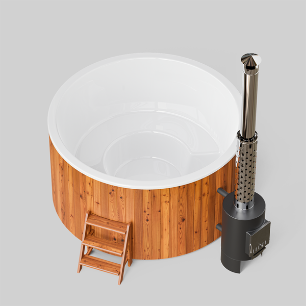 Высота купели с учётом надёжного металлического каркаса 110 см. Трёхступенчатая лестница, которая входит в комплектацию купели, позволит комфортно преодолеть эту высоту. Данная модель оснащается 40 киловатами тепловой мощности, разгоняемой внешней печью от POLARSPA. Разгон до комфортной температуры 1,5-2 часа без опции утепления и около часа с таковой. В комплекте с термокрышкой можно получить отличный бонус: динамичный разогрев плюс сохранение тепла длительное время даже зимой. Два с лишним метра в диаметре позволят разместить большую дружную семью или компанию друзей. Добавь к этому аэромассаж и хромотерапию и полноценный спа готов. Внутренняя чаша купели имеет идеальные гладкие и приятные на ощупь формы. И выполнена в спокойном белом цвете. Вода в такой чаше имеет красивый глубокий оттенок. Внешняя отделка и лестница выполнены из древесины термообработанной сосны в светлом или тёмном исполнении на выбор. Такая древесина позволяет размещать купели POLARSPA как в помещении, так и на улице. В любую погоду.