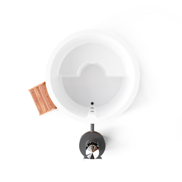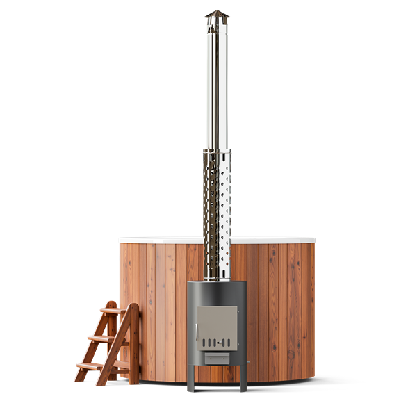 Высота купели с учётом надёжного металлического каркаса 110 см. Трёхступенчатая лестница, которая входит в комплектацию купели, позволит комфортно преодолеть эту высоту. Данная модель оснащается 40 киловатами тепловой мощности, разгоняемой внешней печью от POLARSPA. Разгон до комфортной температуры 1,5-2 часа без опции утепления и около часа с таковой. В комплекте с термокрышкой можно получить отличный бонус: динамичный разогрев плюс сохранение тепла длительное время даже зимой. Уютные метр шестьдесят в диаметре вместят до 4 человек. Добавь к этому аэромассаж и хромотерапию и полноценный миниспа готов. Внутренняя чаша купели имеет идеальные гладкие и приятные на ощупь формы. И выполнена в спокойном белом цвете. Вода в такой чаше имеет красивый глубокий оттенок. Внешняя отделка и лестница выполнены из древесины термообработанной сосны в светлом или тёмном исполнении на выбор.