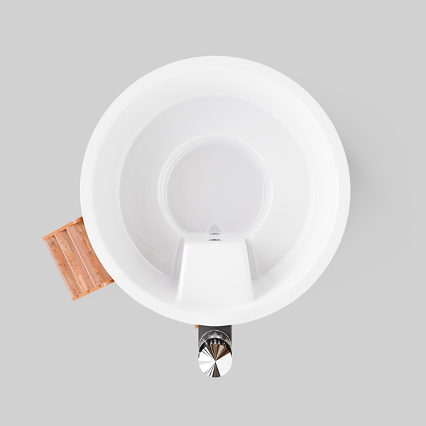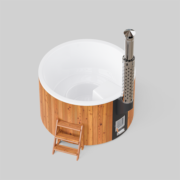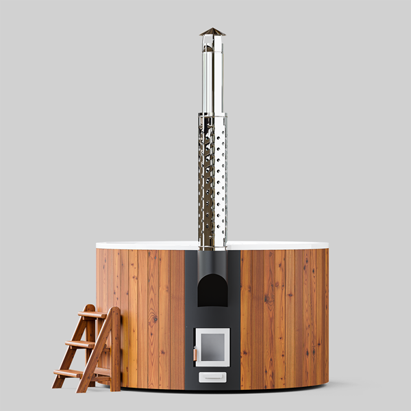 Модель полностью оправдывает свое название. Функциональность и дизайн изделия призваны сделать отдых премиальным. Чаша выполнена из высококлассного многослойного композита, а дополнительные защитные и декоративные свойства ей придает инновационное покрытие — гелькоут немецкой компании BUFA. Обшивку изготавливаем из экологичной термососны приятных оттенков. Выбирайте темный или светлый вариант, чтобы купель органично вписалась в дизайн окружающего пространства.