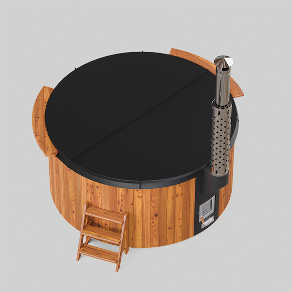 Купель можно использовать на улице при любой погоде. Интегрированная в чашу купели печь из нержавеющей стали быстро нагреет воду до комфортной температуры. А через установленное в дверце печи жаропрочное стекло вы можете наблюдать, как красиво разгорается огонь. Дымоход защищен специальным экраном из нержавеющей стали, поэтому обжечься просто нереально. Печь эстетично встроена в купель, а все коммуникации аккуратно спрятаны внутри конструкции.