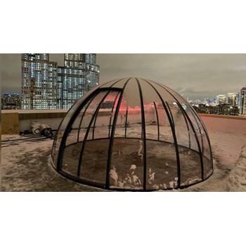 Купольные беседки от лидера по производству некапитальных конструкций компании CUPOL 365 - это надёжность, качественные комплектующие материалы, эстетика и быстрый монтаж. Данная модель оснащена входной дверью шириной 1,5 м.