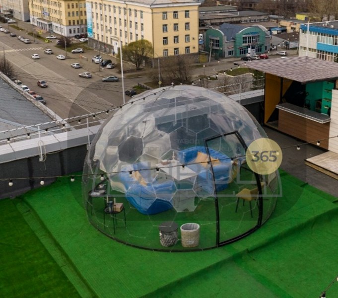В нижней части бескаркасной купольной беседки имеется герметизация из ПВХ-пленки и уплотнители в зоне двери. Это позволяет эксплуатировать беседку круглогодично и в любых погодных условиях — во время ветра, осадков, низких температур и других негативных факторов окружающей среды. Прозрачные стены отлично подходят для отдыха на воздухе. Основание выполнено толстостенной профильной трубы с сечением 50х20х2 мм. Процесс обработки и сборки металла выполняется в современном стиле, благодаря особой технологии подготовки и гибки металла, на его поверхности нет изъянов — жимков, желобков и т.п.