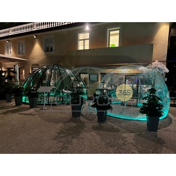 Бескаркасная купольная беседка состоит из ячеек монолитного поликарбоната толщиной 3 мм и соответствует действующим требованиям ГОСТ. Это надежный материал, который стойко выдерживает агрессивные условия эксплуатации и различные нагрузки. Время производства занимает от 5 дней, а цена зависит от выбранного дизайна и размера. В готовой бескаркасной конструкции может разместиться от 6 до 24 человек.