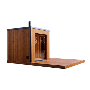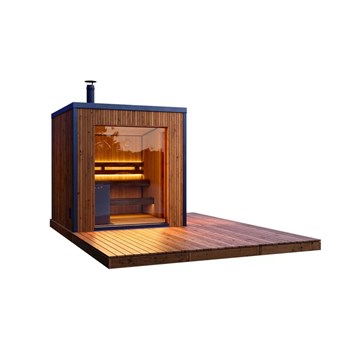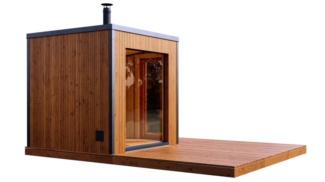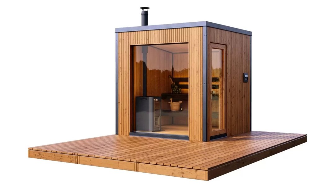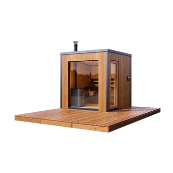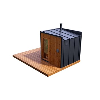 Стильная и современная модульная баня с электрической или дровяной печью на выбор. Баня L2 размером 2,25 м на 2,3 м и на 2,55 м высотой созданна для компактных загородных участков или для размещения в спортивных клубах и спа-центров.