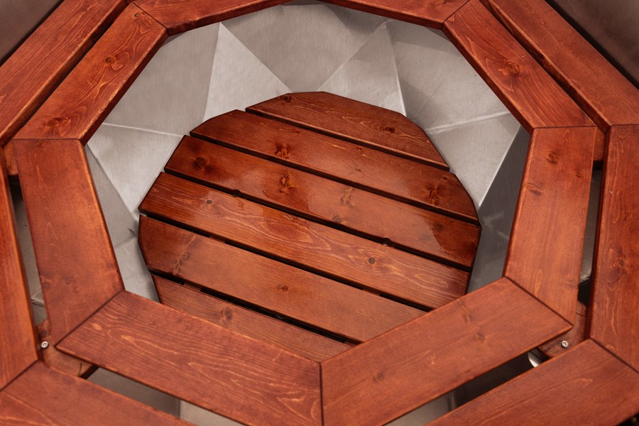 Название и внешний вид этого чана говорят сами за себя. Дизайн в форме бриллианта притягивает взор. Такой дизайн выбран не с проста. Благодаря этому внутри появляется дополнительное пространство, что делает посадку в чане более комфортной. Также в этой модели установлена обновлённая печь с более высоким КПД. А усиленная нижняя часть чана увеличивает срок эксплуатации. Подножник, сиденья и борт купели отделаны алтайским кедром.
