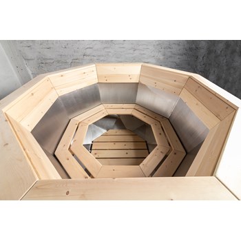 Название и внешний вид этого чана говорят сами за себя. Дизайн в форме бриллианта притягивает взор. Такой дизайн выбран не с проста. Благодаря этому внутри появляется дополнительное пространство, что делает посадку в чане более комфортной. Также в этой модели установлена обновлённая печь с более высоким КПД. А усиленная нижняя часть чана увеличивает срок эксплуатации. Подножник, сиденья и борт купели отделаны алтайским кедром.