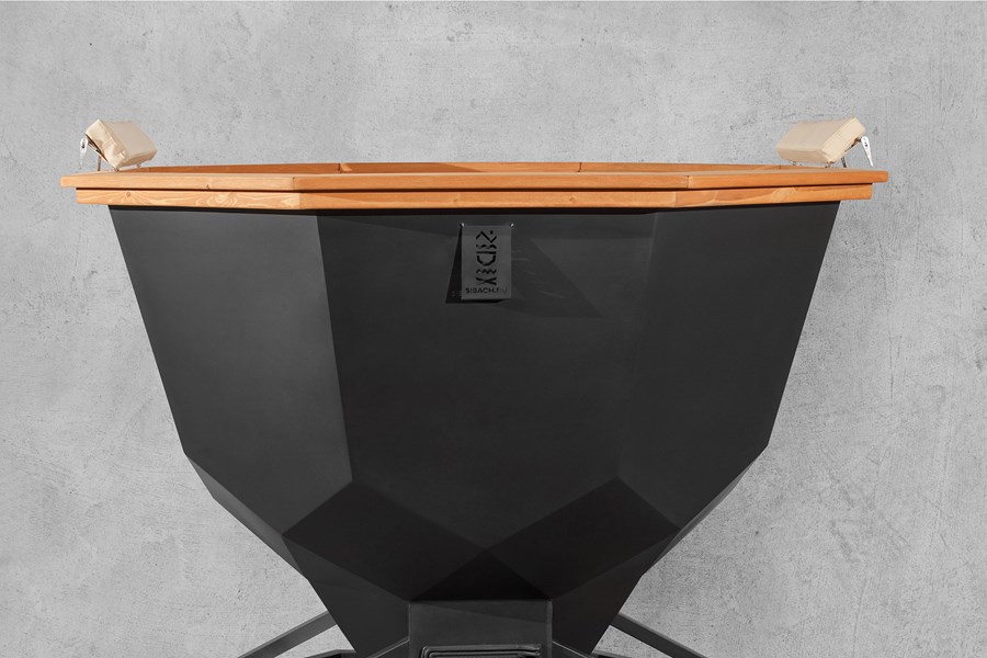 Для ценителей особенного. Чёрный бриллиант. Название и внешний вид этого чана говорят сами за себя. А матовый чёрный выглядит просто потрясающе. Дизайн в форме бриллианта притягивает взор. Такой дизайн выбран не с проста. Благодаря этому внутри появляется дополнительное пространство, что делает посадку в чане более комфортной. Также в этой модели установлена обновлённая печь с более высоким КПД. А усиленная нижняя часть чана увеличивает срок эксплуатации. Подножник, сиденья и борт купели отделаны алтайским кедром.