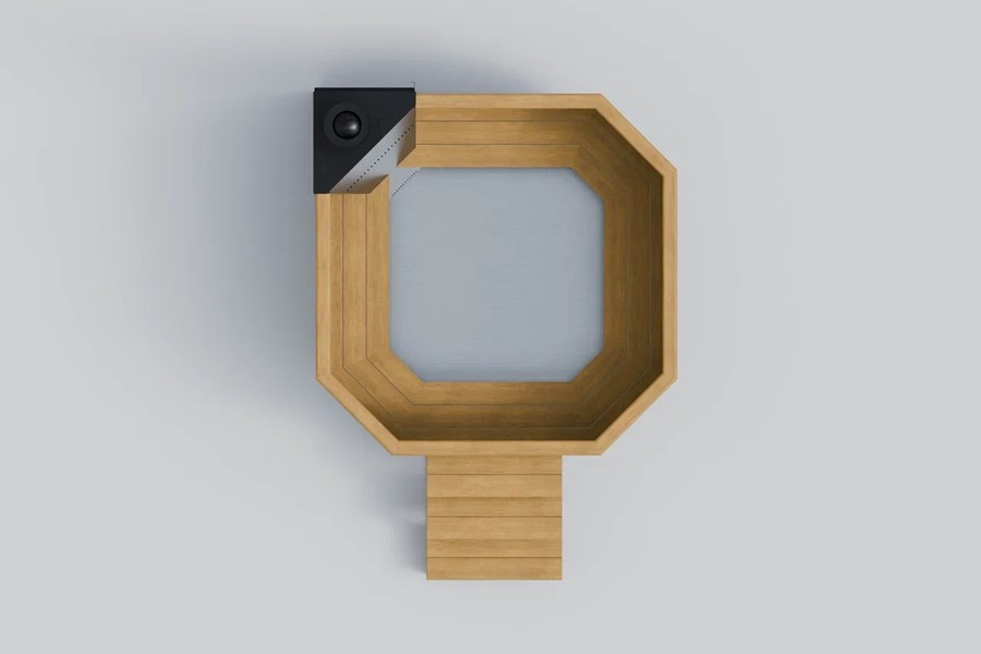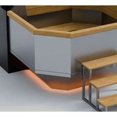 Чаша из нержавеющей стали AISI 304 2мм сатинированная. Печь погружная боковая из нержавеющей стали AISI 430 2мм (внешняя панель окрашена черной огнеупорной краской). Комплект дымохода составной: старт - сендвич, средняя часть - сендвич, часть с заслонкой, верхняя часть - дефлектор с ветрозащитой (нерж. сталь). Деревянные элементы (алтайский кедр): верх по кругу, спинка по кругу, сиденье по кругу, ступени.