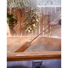 Деревянные элементы (алтайский кедр): спинка по кругу, сиденье по кругу, подножник, ступени.