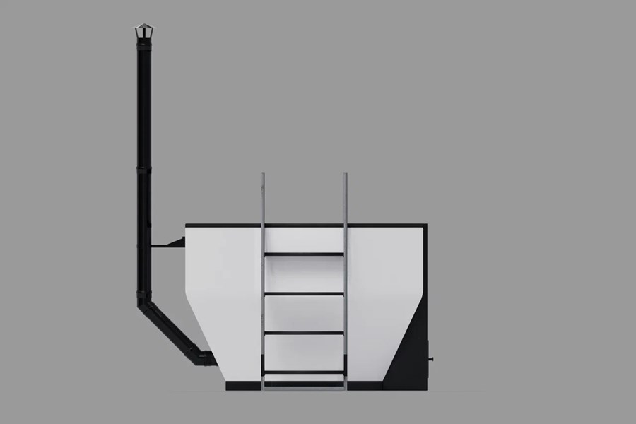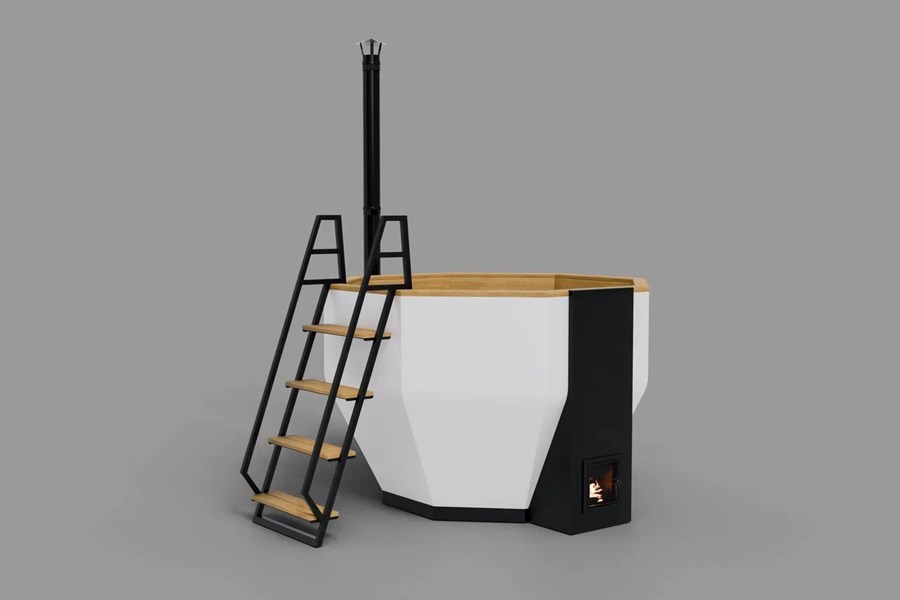 Чаша из нержавеющей стали AISI 430 2мм, окрашена белой огнеупорной краской, увеличенный объем топочной камеры, печь с водяной рубашкой окрашена черной огнеупорной краской, тонирование дерева темным маслом.