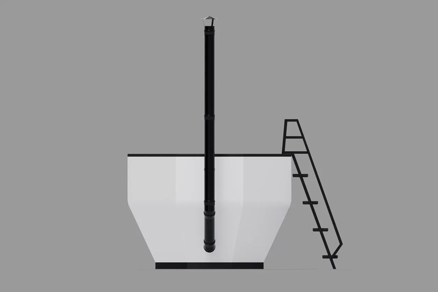 Металлические элементы: чаша восьмигранная 1850х1300 мм, опора восьмигранная, комплект дымохода составной, сливная труба с краном, приставная лестница, сатинирование чаши изнутри. Чаша, печь и опора окрашены огнеупорной краской.