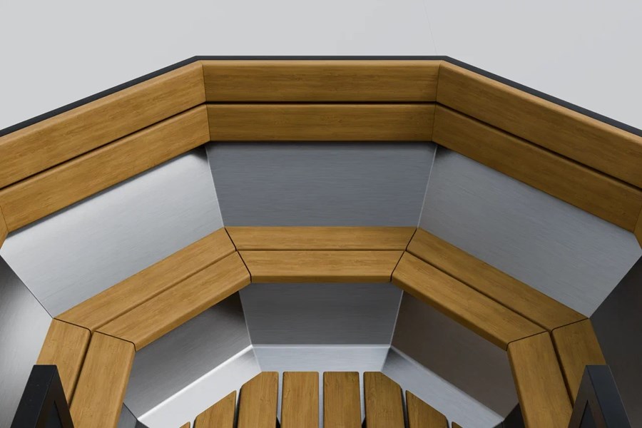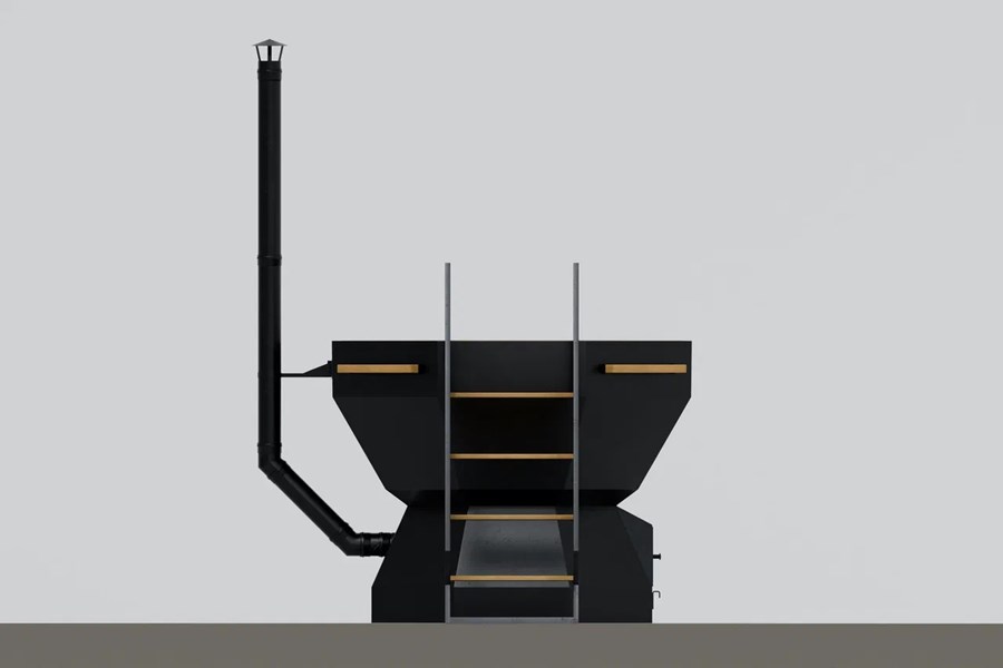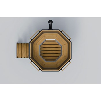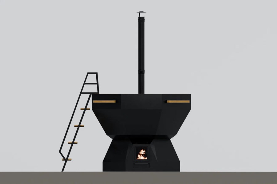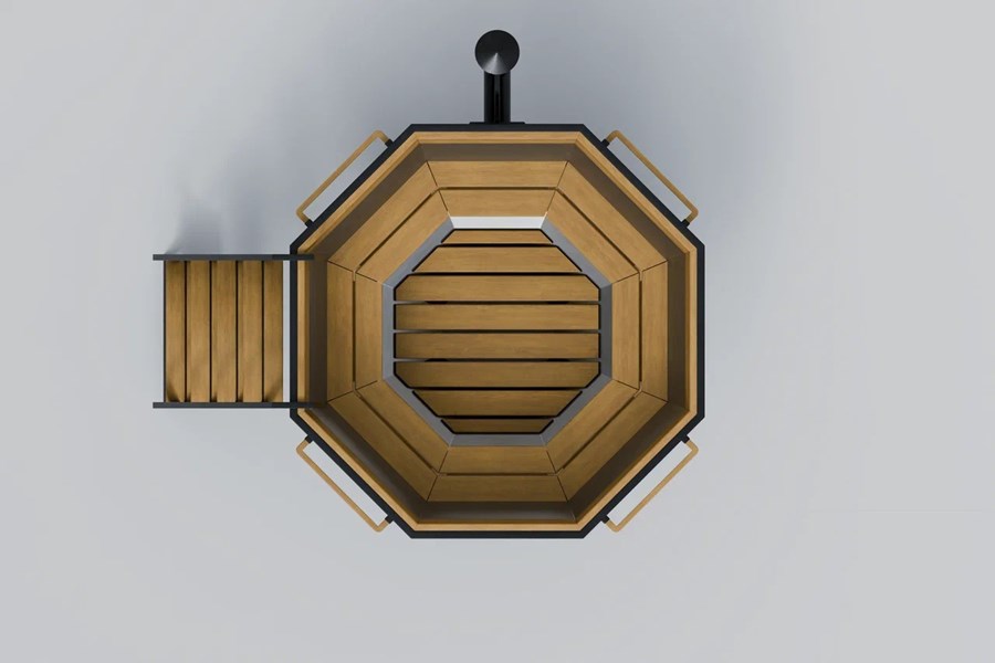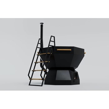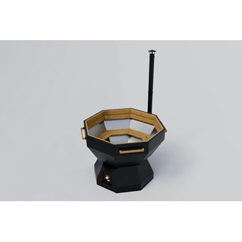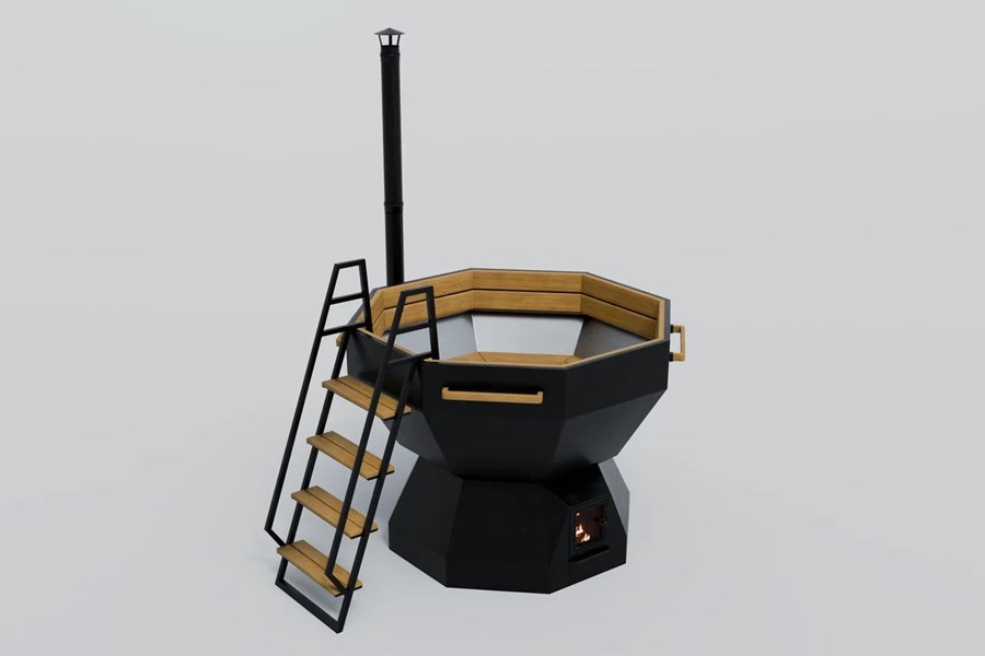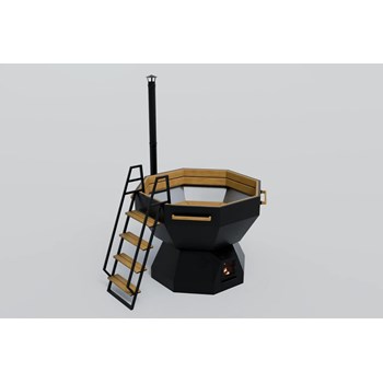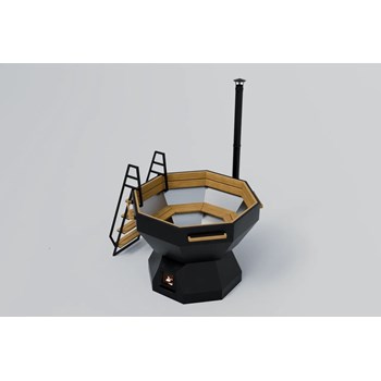 Металлические элементы: чаша восьмигранная 1850х1465 мм, опора восьмигранная, комплект дымохода составной, сливная труба с краном, приставная лестница, сатинирование чаши изнутри. Чаша, печь и опора окрашены огнеупорной краской.