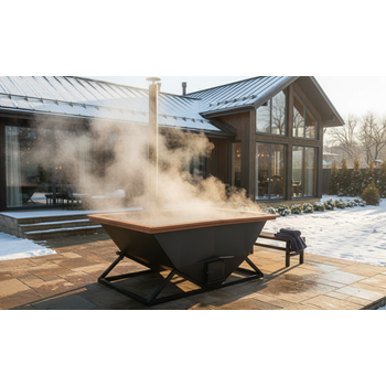 Металлические элементы: чаша из нерж. стали AISI 430 2 мм, дымоход из нерж. стали, 2 сливные трубы нерж. сталь, 2 крана (оцинкованные), печь из черного металла, сатинирование чаши изнутри. Чаша, печь и опора окрашены огнеупорной краской.