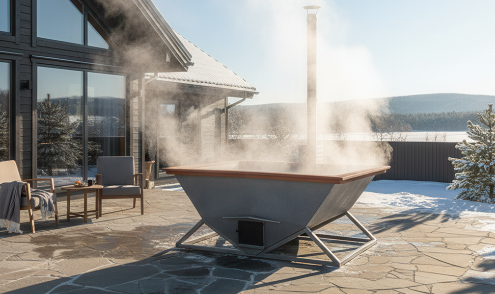 Металлические элементы: чаша из нерж. стали AISI 430 2 мм, дымоход из нерж. стали, 2 сливные трубы нерж. сталь, 2 крана (оцинкованные), печь из черного металла, сатинирование чаши изнутри.